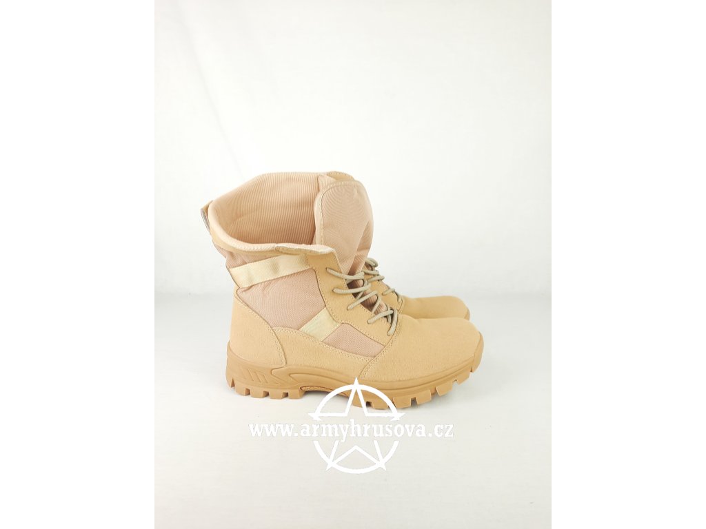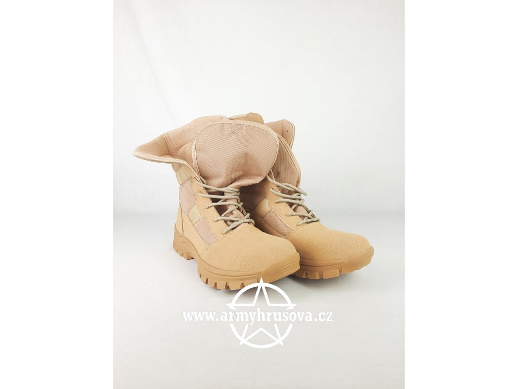 Lehké a odolné turistické boty navržené pro náročné podmínky v pouštním prostředí. Díky kombinaci syntetické broušené kůže a pevné gumové podešve získáte boty s vysokou životností a pohodlným nošením i při delším zatížení.