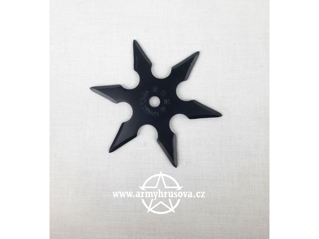 Vrhací hvězdice černá – klasická kovová hvězdice s ostrými hroty, ideální pro trénink vrhacích technik. Vyrobena z odolného kovu s černou povrchovou úpravou. Součástí je praktický obal pro bezpečné uložení a přenášení.